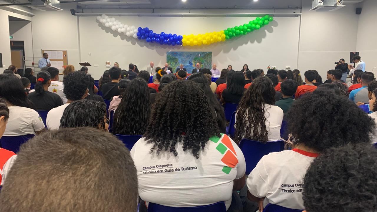 Abertura oficial do projeto Pontes de Saberes, reunindo autoridades, professores e estudante.