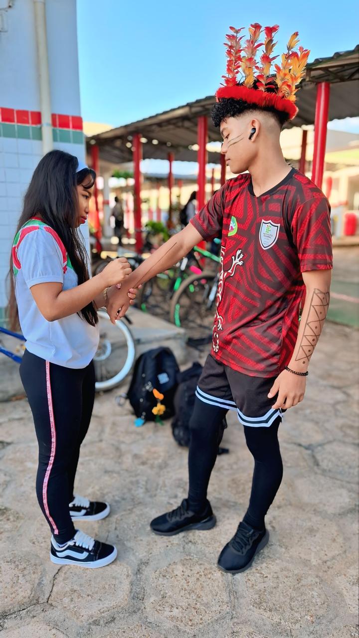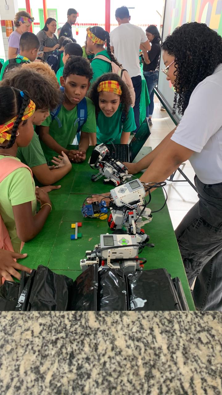 Estudantes participam de oficina de robótica e jovens expressam a valorização das culturas locais com pinturas corporais e adereços tradicionais